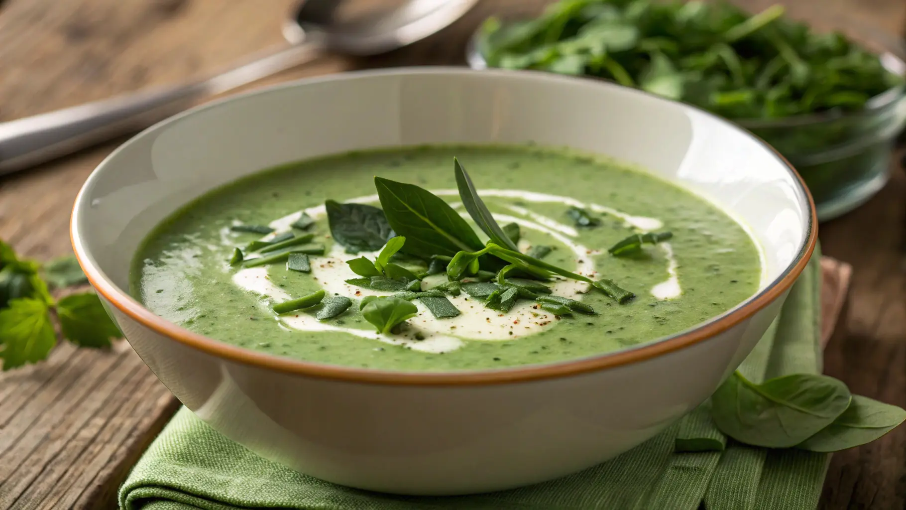 Bärlauch: Der Star unseres Rezepts! Bärlauch bringt den unverwechselbaren frischen Frühlingsgeschmack in deine Schüssel. Sein mildes Knoblaucharoma macht ihn zu einer idealen Zutat für leichte Frühlingssuppen. Kein Bärlauch zur Hand? Spinat oder Rucola können hier gut einspringen.